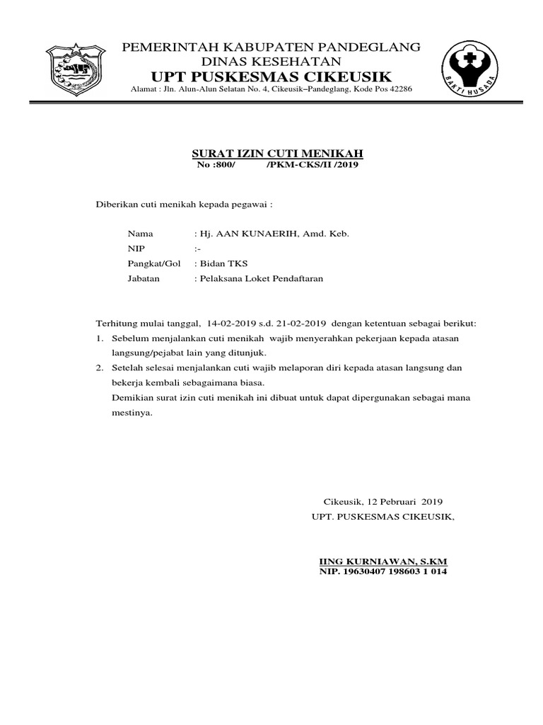 Surat Izin Cuti Menikah Docx Demikian surat permohonan cuti menikah ini saya sampaikan dengan sebenarnya, atas perhatian dan izin dari bapak saya ucapkan banyak terimakasih.
